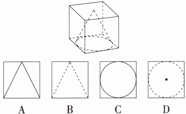 9.「2024陕西师大附中期中,」如图,一个实木正方体内部有一个圆锥体空洞,它的俯视图是( )