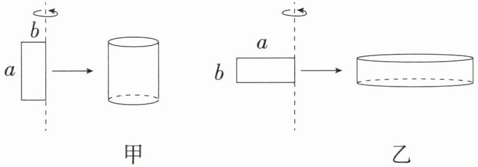 12.「2025 山西太原期中」如图,已知长方形的长为 a,宽为 b(其中 a>b),将这个长方形分别绕它的长和宽所在直线旋转一周,得到两个圆柱甲、乙,则这两个圆柱的侧面积和体积的关系为( )