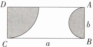 (1)ab-1/4πb²-1/2π(b/2)²=ab-3/8πb².答:铺上五彩石的空地的面积为(ab-3/8πb²)米².