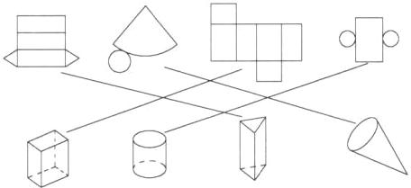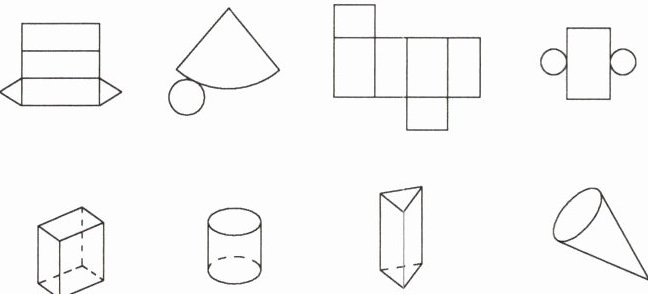 3. 学科 教材变式 如图,上面的图形分别是下面哪个立体图形展开的形状?请你把有对应关系的平面图形与立体图形连接起来。