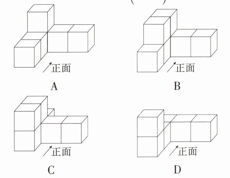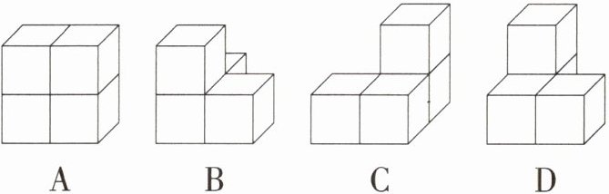 6.「2024山东威海中考,☆☆」下列几何体都是由四个大小相同的小正方体搭成的,其中从正面、左面和上面看到的形状图完全相同的是( )