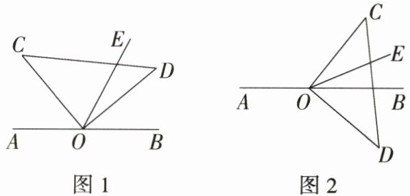 (1)若按照图1的方式摆放,且$∠AOC= 52^{\circ }$,射线OE平分$∠BOC$,则$∠DOE$的度数为____.