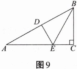 12. 如图9所示,已知在$\triangle ABC$中,$\angle C= 90^{\circ }$,点D是斜边AB的中点,$AB= 2BC$,$DE\bot AB$交AC于点E。
