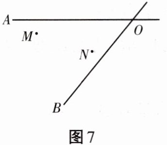 如图7所示,某地有两所大学和两条相交叉的公路(点M、N表示大学,AO、BO表示公路)。现计划在离大学更近的区域内修建一座物资仓库,使仓库到两所大学的距离相等,到两条公路的距离也相等。你能确定仓库P应该建在什么位置吗?用无刻度的直尺和圆规在所给的图形中画出你的设计方案。
