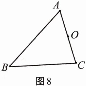 15. 如图8所示,已知点$O是\triangle ABC边AC$的中点,试画出
