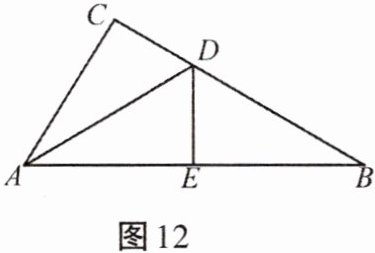 12. 如图12所示,在Rt△ABC中,∠C= 90°,∠CAB的平分线AD交BC于点D,若DE垂直平分AB,求∠B的度数.