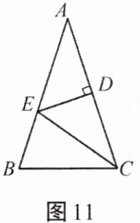 11. 如图11所示,△ABC中,AB= AC,∠A= 36°,AC的垂直平分线交AB于点E,D为垂足,连接EC.