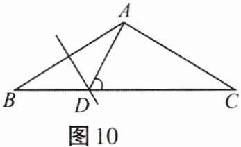 10. 如图10所示,AB= AC,∠BAC= 120°,AB的垂直平分线交BC于点D,那么∠ADC=