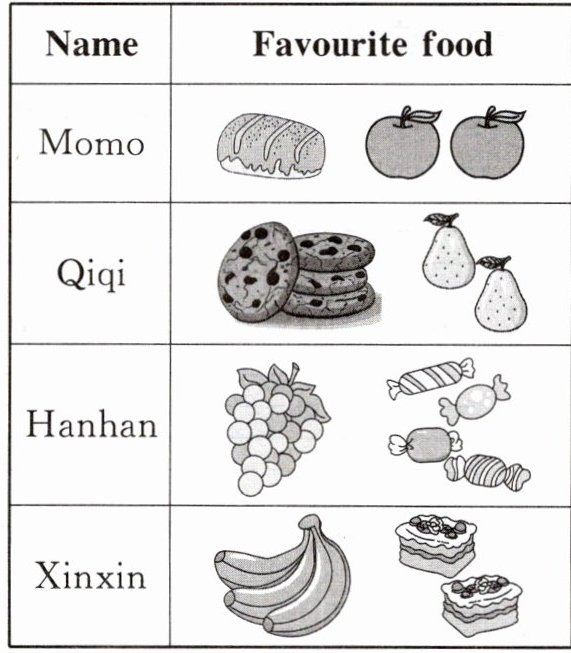 and candies. Does Xinxin like ice cream?Momo: No, she 4.