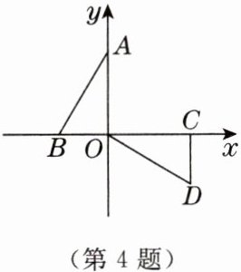 4. 如图,在平面直角坐标系中,已知$A(0,5)$,$B(-3,0)$。若$\triangle AOB\cong\triangle OCD$,则点$D$的坐标是(