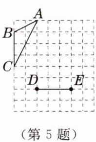 5. 如图,网格中有$\triangle ABC及线段DE$,在网格中找一点$F$(必在格点上),使$\triangle DEF与\triangle ABC$全等,这样的点$F$有(