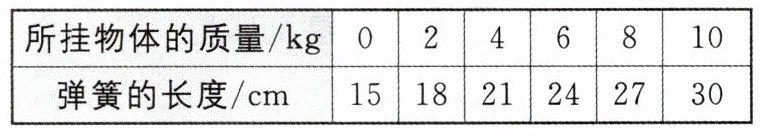 (2)从表中数据可知,不挂物体时,弹簧的长度为
