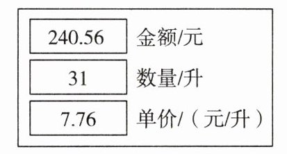 9. [2025·太原模拟]小亮爸爸到加油站加油,如图是所用的加油机上的数据显示牌,金额随着数量的变化而变化.则下列判断正确的是 (