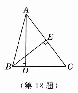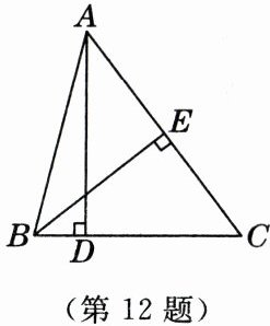 12. 如图,在△ABC中,$AC = 10$,$BC = 8$,AD,BE分别是边BC,AC上的高,且$AD = 8$,则BE的长为______.