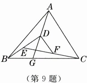 9. 如图,在△ABC中,点G是BC边上任意一点,点D,E,F分别是AG,BD,CE的中点,$S_{\triangle ABC}= 48$,则$S_{\triangle DEF}$的值为(
