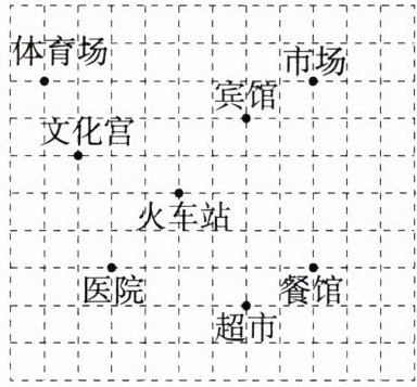 宾馆(1,2),文化宫(-2,1),医院(-1,-1),超市(1,-2)。