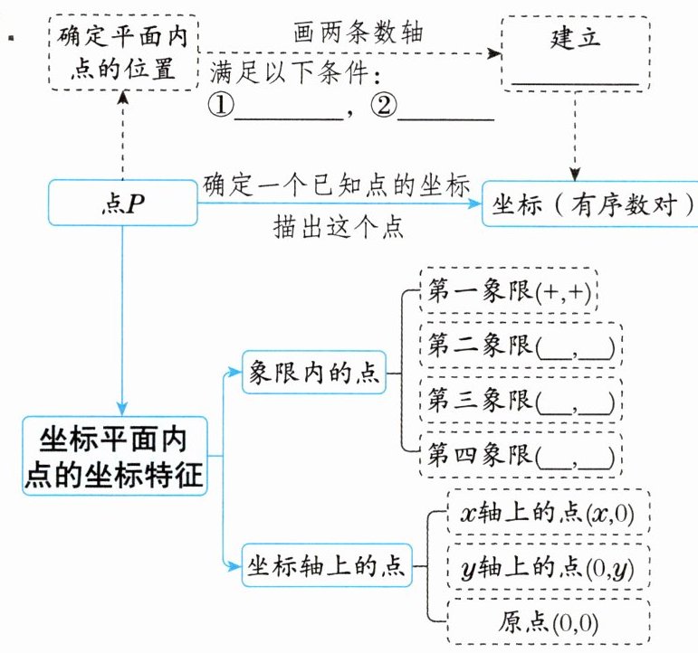 1.互相垂直;原点重合;平面直角坐标系;一;+;-;-;+;-
