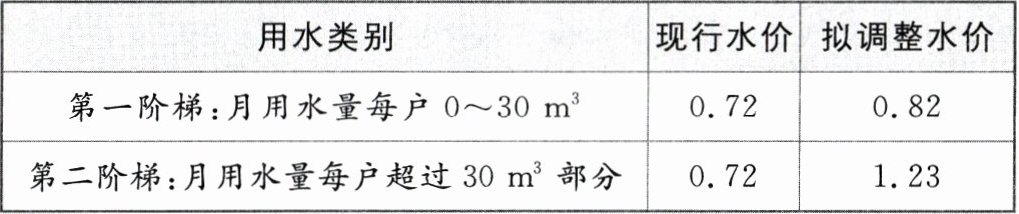 10. 以下是某市自来水价格调整表(部分):(单位:元$/m^3$)