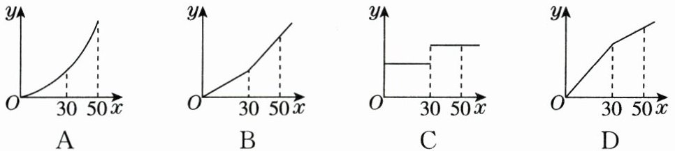 则调整水价后某户居民月用水量 $ x(m^3) $ 与应交水费 $ y $(元)的函数大致图象是(