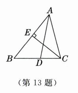 13. 如图,在 $ \triangle ABC $ 中,$ AD $ 平分 $ \angle BAC $,$ CE \perp AB $ 于点 $ E $,若 $ \angle ACE = 36^{\circ} $,$ \angle ADC = 80^{\circ} $,则 $ \angle B $ 的度数为