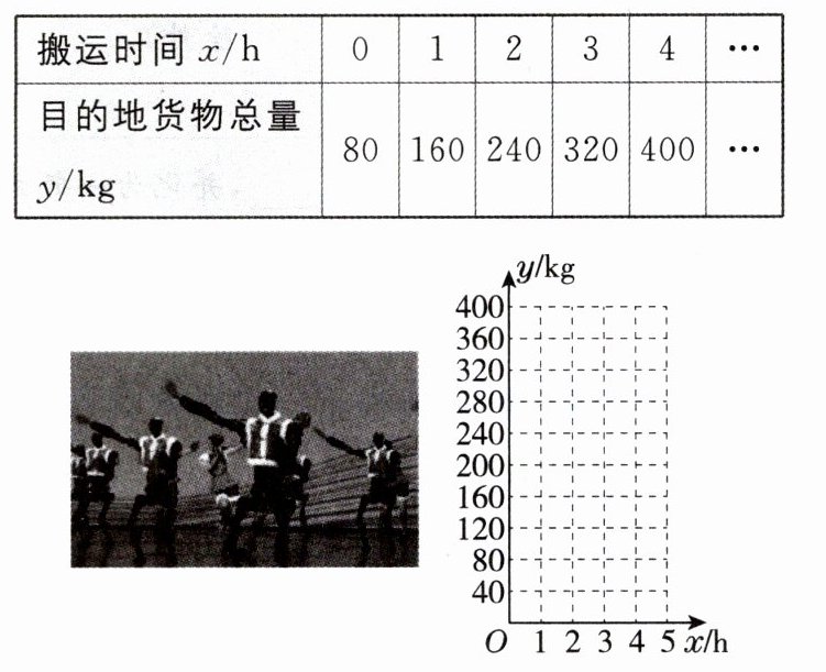 (3)当 y=560 时,80x+80=560,解得 x=6,所以当目的地货物总量为 560 kg 时,这台机器人的搬运时间是 6 h.