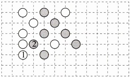 9. 真实情境 小明和小亮玩五子棋游戏,他们制定的比赛规则是只要同色5子先成一条直线就算胜。如图是两人玩的一盘棋,若白①的位置是(1,-5),黑②的位置是(2,-4),请画出平面直角坐标系。现轮到黑棋走,你认为黑棋放在图中什么位置就获得胜利了?
