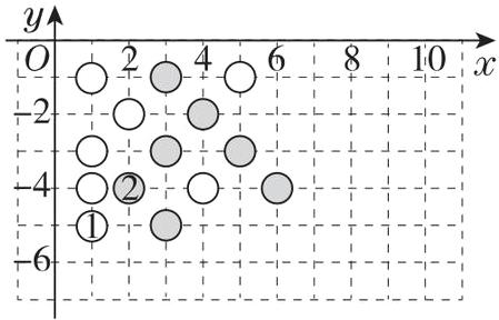 解:如图所示,黑棋放在图中(2,0)或(7,−5)的位置就获得胜利了.