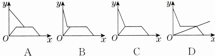 4. 小明根据邻居家的故事写了一首小诗:“儿子学成今日返,老父早早到车站,儿子到后细端详,父子高兴把家还.”如果用纵轴 y 表示父亲与儿子离家的距离,用横轴 x 表示父亲离家的时间,那么下面的图象与上述诗的含义大致吻合的是(
