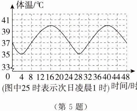 5. 骆驼被称为“沙漠之舟”,它的体温随时间的变化而发生较大的变化. 如图反映了骆驼的体温随时间的变化情况,下列说法错误的是(
