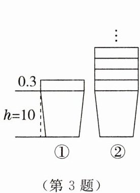 3. 某种型号的纸杯如图①所示,若将 n 个这种型号的纸杯按图②中的方式叠放在一起,叠在一起的纸杯的总高度为 H. 则 H 与 n 满足的函数关系可能是(