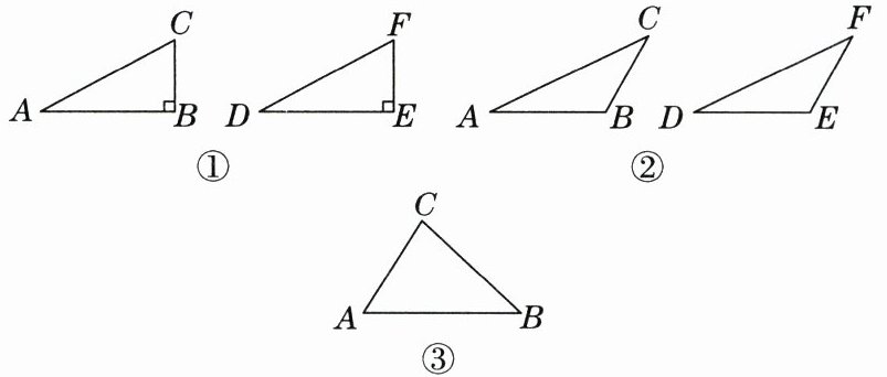 【深入探究】(1) 当∠B是直角时,△ABC≌△DEF. 如图①,在△ABC和△DEF中,AC= DF,BC= EF,∠B= ∠E= 90°,根据判定方法______,可以证得Rt△ABC≌Rt△DEF.