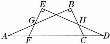 3. 如图,$Rt\triangle ABC$ 与 $Rt\triangle DEF$ 的顶点 $A$,$F$,$C$,$D$ 在同一条直线上,$AB$ 与 $EF$ 交于点 $G$,$BC$ 与 $DE$ 交于点 $H$,$\angle B= \angle E = 90^{\circ}$,$AF = CD$,$AB = DE$。求证:$Rt\triangle ABC\cong Rt\triangle DEF$。[教材P106例7变式]