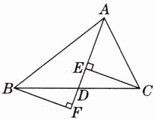 3. 如图,分别过点$B$,$C作\triangle ABC的边BC上的中线AD$所在直线的垂线,垂足分别为$F$,$E$.