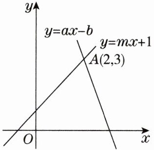 8. 整体思想 如图,直线$y= ax-b与直线y= mx+1交于点A(2,3)$,则方程组$\left\{\begin{array}{l} y-3= a(x+2)-b,\\ y-3= m(x+2)+1\end{array} \right. $的解是 (