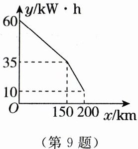 9. 如图是某型号新能源纯电动汽车充满电后,蓄电池剩余电量$ y(kW\cdoth) $关于已行驶路程 x(km) 的函数图象.下列说法错误的是(