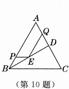 10. 如图,在等边三角形$ ABC $中,$ BD $是中线,点$ P $,$ Q 分别在 AB $,$ AD $上,且$ BP = AQ = QD = 1 $,动点$ E 在 BD $上,则$ PE + QE $的最小值为(