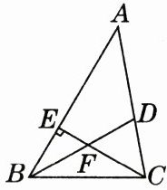 12. 如图,在$ \triangle ABC $中,$ BD $是一条角平分线,$ CE $是 AB 边上的高线,$ BD $,$ CE 相交于点 F $,若$ \angle EFB = 60^{\circ} $,$ \angle BDC = 70^{\circ} $,则$ \angle A = $