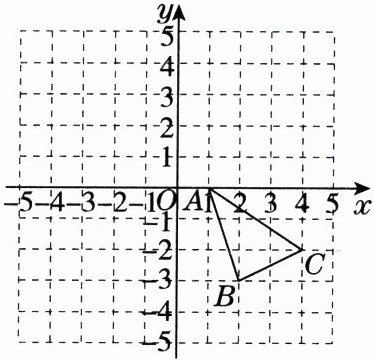 15. 如图,在平面直角坐标系中,已知$ \triangle ABC 的三个顶点的坐标分别为 A(1,0) $,$ B(2,-3) $,$ C(4,-2) $.