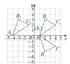 (2)画出$ \triangle A_1B_1C_1 $向左平移5个单位长度后得到的$ \triangle A_2B_2C_2 $;