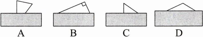 10. 下面给出的四个三角形都有一部分被遮挡住了,其中不能判断三角形类型的是(