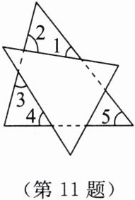 11. [2025年1月安庆期末]将两张三角形纸片按如图所示摆放,量得$∠1 + ∠2 + ∠3 + ∠4 = 220^{\circ}$,则$∠5$的度数为(