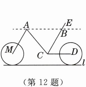 12. 立德树人·关注生活2025年1月合肥期末如图是某品牌共享单车放在水平地面的示意图,其中$AB,CD都与地面l$平行,$∠BCD = 60^{\circ},∠BAC = 50^{\circ}$,当$∠MAC$为