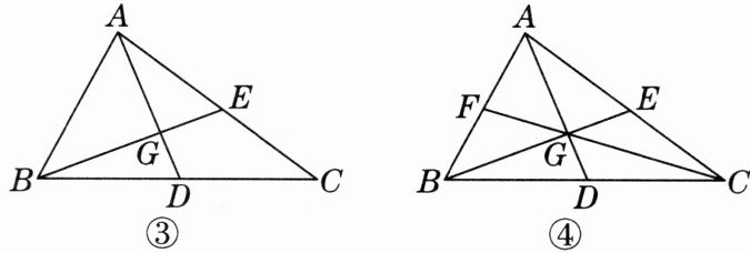 (4)如图④,$\triangle ABC的三条中线AD$,$BE$,$CF相交于点G$,