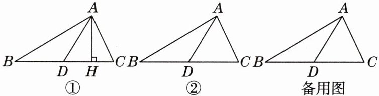(2)如图②,$AD是\triangle ABC$的中线,你能把$\triangle ABC分成面积相等的4$个三角形吗?试画出相应的图形。(用两种方法)