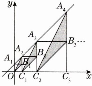 11. 如图,直线 $ y = x + 2 $ 与 $ y $ 轴交于点 $ A_1 $,按如图所示的方式作正方形 $ A_1B_1C_1O $,正方形 $ A_2B_2C_2C_1 $,正方形 $ A_3B_3C_3C_2 $,…,点 $ A_1,A_2,A_3,… $ 在直线 $ y = x + 2 $ 上,点 $ C_1,C_2,C_3,… $ 在 $ x $ 轴上,图中阴影部分三角形的面积从左到右依次记为 $ S_1,S_2,S_3,…,S_n $,则 $ S_1 = $