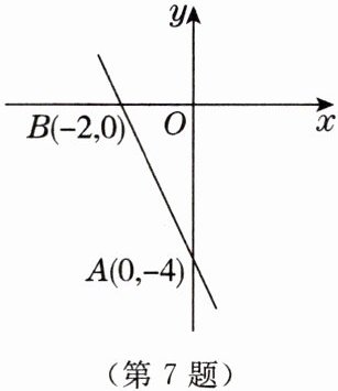 7. 如图,一次函数 $ y = kx + b $ 的图象经过点 $ A(0,-4) $,$ B(-2,0) $,则关于 $ x $ 的不等式 $ kx + b + 4 > 0 $ 的解集为(