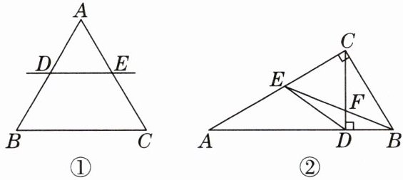 .(2)如图②,在$△ABC$中,$∠ACB= 90^{\circ },CD⊥AB$,垂足为D,直线BE是$△ABC$的恰巧线,分别交AC于点E,交CD于点F,连接DE,且$∠A= ∠ADE$.求证:直线EF是$△CDE$的恰巧线.