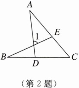2. 如图, 点 D, E 分别在线段 BC, AC 上, 连接 AD, BE. 若 $ \angle A = 35 ^ { \circ } $, $ \angle B = 25 ^ { \circ } $, $ \angle C = 50 ^ { \circ } $, 则 $ \angle 1 $ 的大小为