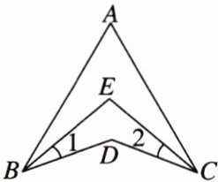 5. [2024·广州期末] 如图, 在四边形 ABDC 中, 若 BE 平分 $ \angle ABD $, CE 平分 $ \angle ACD $, BE 与 CE 交于点 E, 探究 $ \angle BDC $、$ \angle BEC $ 和 $ \angle BAC $ 之间的数量关系.