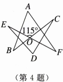 4. 如图, 若 $ \angle EOC = 115 ^ { \circ } $, 则 $ \angle A + \angle B + \angle C + \angle D + \angle E + \angle F = $